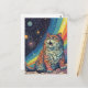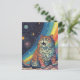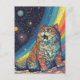Cartão Postal Cat Meows no espaço com arco-íris