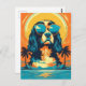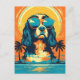 Design de um Rei Cavaleiro Charles Spaniel vestindo óculos de sol em uma praia tropical.