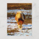 Cartão Postal Cavalo marrom e minúsculo creme na neve.