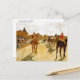 Um cartão-postal de arte, com Racecavalo diante dos Stands (The Parade) (1872), de Edgar Degas (1834-1917). Uma pintura de jockeys desfilando antes da corrida. Degas era um artista impressionista francês, notado por sua representação de dançarinos. Ele também fez vários pastéis de cavalos e jockeys.