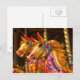 Um par de cavalos de Feliz-volta fotografados em modo retrorreflector vívido e colorido retro "filme" reacendendo as cores vivas mágicas espetaculares dos filmes de transparência de cores da década de 1960/70.