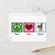 Eu adoro belos cavalos. Um bonito sinal verde de paz, um coração vermelho, e um cavalo marrom em um quadrado azul fazem um cartão-postal equestre bonito para ir com um presente.