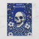 Cartão Postal Caveira Assustadora de Halloween com Flores