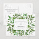 Cartão postal de Celebração da Vida. Detalhes no verso. Perda de um ente querido com celebração. Compartilhe Memórias. Personalize. Horizontal. Folhagem. Fundo Branco.