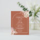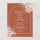 Aquarelas de grama das pampas florais bonitas e uma moldura de arco chique enquadram a celebração da vida, e os detalhes do funeral são apresentados em tipografia moderna sobre um fundo terracota. Criado por Thisisnotme©
