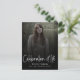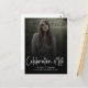 Este cartão postal de funeral moderno vai além dos formatos tradicionais, permitindo que você crie uma homenagem significativa e personalizada. O roteiro de 'Celebração da Vida' é uma camada sobre a foto e gradiente preto.