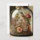 Cartão Postal Cena Botânica Antiga em Pote de Vidro com Pássaros
