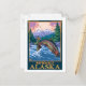 A cena da pesca com mosca - Seward, Alaska - poster das viagens vintage foi criada em 2007. Esta imagem descreve cenas de Seward, AK.