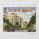 Cartaz Vintage, por volta de 1950, na rua Miami Beach, Flórida, da Avenida Collins com hotéis de luxo, incluindo a Saxónia. As palavras Miami Beach em uma fonte de deco artístico foram adicionadas à placa original.