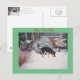 Cartão Postal cena de neve de inverno de um cão preto e bronzead