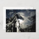 Uma bela cena de cemitério com uma cripta gótica e um céu escuro dramático em um cartão postal. Bonito estilo gótico.