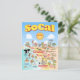 Vista colorida do sul da Califórnia - personagens malucos na praia e no deserto da SoCal mostrando Los Angeles, Papais noeis Barbara, San Diego, Riverside, Palm Primavera, Anaheim, Anza Borrego e Joshua Tree - também as cidades fronteiriças de Tijuana, Tecate e Mexicali. Este mapa do SoCal tem tudo - uma surfista pendura dez vezes enquanto uma sereia salta numa rocha, uma baleia assassina salta da água, animais de zoológico cumprimentam os turistas, um casal de praia muscular ambos flexiona para impressionar enquanto um T-Rex lança um desafio e um tanque despenca na posição e muito mais..