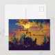 Cartão Postal Cenário de aquarela com árvores ao sol nascente Ob