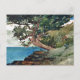 Um cartão postal de arte fina com uma aquarela, Bermudas (1900), do artista americano do movimento realista, Winslow Homer (1836-1910). Uma paisagem de arte fina de uma enseada junto ao oceano com uma árvore suspensa.