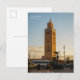 Experimente a energia agitada de Marrakesh, Marrocos, capturada neste cartão-postal que apresenta a arquitetura icônica da cidade banhada em uma luz quente e dourada. A imagem mostra o contraste dinâmico entre o minarete majestoso e atemporal e a vida agitada e moderna nas ruas abaixo, completa com tráfego, pedestres e o fluxo vibrante de uma metrópole norte-africana. Este cartão-postal encapsula perfeitamente a atmosfera exótica, animada e inesquecível de Marrakesh, tornando-o um souvenir ou cartão de viagem ideal.