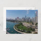 Vista de pássaros de um drone voando sobre DuSable Harbor em Chicago Illinois. O lago Shore Drive e a adorável linha do horizonte central de Chicago estão ao fundo.