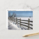 Este cartão postal cria um sentimento clássico de inverno rural...um campo cercado e a igreja do campo bem acima da colina. O céu é azul contra a neve branca pura.