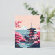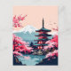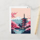 Cartão Postal Cerejeiras Japonesas e Pagode com Monte Fuji