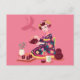 Ilustração da cerimônia de chá japonesa em tons cor-de-rosa com uma grua.