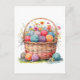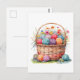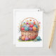 Cartão Postal Cesto de aquarela com bolas de fio e flores