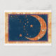 Céu noturno com lua crescente e estrelas sobre página de dicionário antigo.