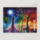 Cartão Postal Céu noturno mágico com larvas e lanternas