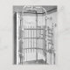 Um incrível chá de banheiro chá de 1887. Tem uma estrutura como uma gaiola com canos verticais por toda a parte. Várias válvulas estão ao longo de um cano vertical à direita e uma cabeça grande de chá no centro acima.