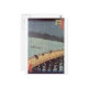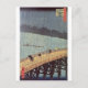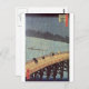Este impressão de cor japonês foi criado por Ichiyusai Hiroshige no século 19. O nome do cheio é: "Chá da noite em Atake e a ponte Excelente". Este impressão japonês é da série famosa: Cem Vistas Famosas do Edo" (Meisho Yedo Hiakkei). Nele vemos alguns trabalhadores japoneses atravessando uma grande ponte, enquanto uma tempestade está enfurecendo, e muita chuva está caindo. Eles estão se cobrindo com chapéus de palha, casacos e talvez guarda-chuvas. Ao fundo vemos também um marinheiro japonês numa canoa como um barco atravessando o rio. O céu está bem escuro por causa da tempestade, e é muito escuro para ver as florestas atrás. O artista também assinou este trabalho de arte em caracteres Kanji e Hiragana (escrevendo Japonês).