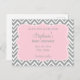 Cartão Postal Chá de Bebê com Listras Cinza, Branco e Rosa Paste