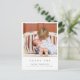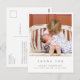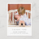 Este belo cartão de agradecimento atemporal com foto é ideal para quem deseja agradecer aos convidados do chá de bebê pelos presentes, amor e apoio recebidos e apresentar o novo membro da família. O design moderno e elegante tem um estilo minimalista e apresenta uma foto quadrada personalizável colocada no topo e tipografia elegante para suas informações. No verso, está a sua mensagem de agradecimento personalizável com seus nomes e endereço de devolução. Use o botão "personalizar" para substituir as fotos e editar o texto.