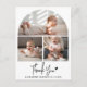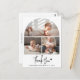 Este Cartão de Foto de Agradecimento para Chá de Bebê Rustic Chic é a combinação perfeita de elegância e calor, projetado para expressar sua gratidão sincera de uma maneira verdadeiramente especial. Com três fotos personalizadas do seu pequeno, o design apresenta a primeira imagem no topo dentro de uma encantadora forma de arco, enquanto duas outras fotos preciosas ficam abaixo, todas lindamente separadas por uma linha branca fina em um fundo branco limpo. Abaixo desta deslumbrante colagem, uma escrita à mão moderna e rústica graciosamente escreve “Obrigado”, seguido pelo nome do seu bebê e data de nascimento, adicionando um toque pessoal e sentimental. O verso do cartão oferece espaço para sua mensagem de agradecimento personalizada, tornando-o um souvenir significativo para amigos e familiares. Com seu design atemporal e impressão de alta qualidade, este cartão de agradecimento é uma maneira sincera de compartilhar sua apreciação enquanto celebra seu mais novo pacote de alegria!