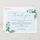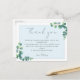 Envie um agradecimento especial aos convidados que compareceram ao chá de bebê. Com um design de eucalipto abraçando os cantos, é a maneira perfeita de dizer obrigado. Isso é adequado tanto para chás de bebê para meninos quanto para meninas. Adicione sua mensagem pessoal e seu nome. Se desejar, você pode excluir o nome e assinar à mão antes de enviar. Há também amplo espaço no verso para adicionar uma mensagem adicional.