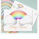 Um simples arco-íris colorido é a base deste convite postal de chá de fraldas neutro em termos de gênero. Suave e fofo. As informações são facilmente alteradas para você.