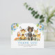Watercolor Woodland Animal Blue Floral Chá de fraldas Obrigado Cartão-Postal. Os Bebês incluem Urso, Veado, Moose, Raccoon, Coelho Coelho, Raposa e Coruja na floresta verde. Inclui lindas flores azuis e brancas de cor aquosa com verde botânico e samambaias.