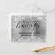 Crie seu obrigado de chá de fraldas que você faz postais. Garota cintilante prateado cintilante nos bordos superior e inferior, sobre uma fina cinza prateada com papel de ombre. Personalize os estilos de fonte para criar o seu próprio adesivo design para sua celebração especial. As cores principais são prata, cinza, preto e branco.