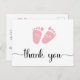 Obrigado bonito que você faz para o chá da sua menina com "obrigado você" em um roteiro na moda com pinceladas e uma aquarela rosa de pés de bebês. No verso, personalize o seu obrigado, envie uma mensagem ou deixe o vazio para uma nota manuscrita.