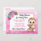 Bebê bonito com ursinho de pelúcia, rosa com arcos e chá de fraldas de flores, convite postal.