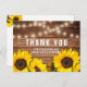 obrigado de chá de fraldas que você faz com um olhar rústico com madeira escura, luzes de cordas e girassóis. A parte traseira do cartão postal pode ser personalizada ou excluir o texto de uma mensagem manuscrita.
