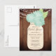 CONVITE DE CHUVEIRO DE NOIVA EM CARTÃO POSTAL DE JARRA DE PEDREIRO RÚSTICO é uma maneira fácil e conveniente de enviar seus convites de chuveiro de noiva. Adicionamos espaço na parte de trás para que o remetente adicione seu endereço de retorno e ainda há espaço para você escrever à mão o endereço nos cartões. Se preferir usar etiquetas, basta excluir as camadas antes de comprar. Estará disponível em outras cores e fará parte de uma coleção. Se você está procurando produtos coordenados, por favor, sinta-se à vontade para me enviar um e-mail para icingonthecakezazzle@icloud.com.