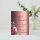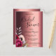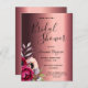 Um Chá de panela moderno e elegante. Um fundo metálico de cobre falsa. Decorado com flores roxas escuras e arrojadas e rosa cor-de-rosa. Modelos para o nome da noiva, data e local do chá. O texto: Chá de panela é escrito com um script de estilo extenso, escrito à mão, letras pretas. Fundo: Um fundo de aparência metálica de cobre falsa