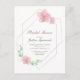 Uma delicada estrutura geométrica de ouro rosa é decorada com simples flores cor-de-rosa e folhagem verde azul neste chá de panela floral bonito. O texto é definido em cor-de-rosa profundo e na fonte de script verde azul. Adicione seus detalhes na página do produto.
