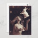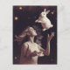 Uma mulher tomando chá com um coelho magicamente flutuando na arte da fantasia do ar