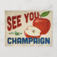 Um cartão postal encantador da viagens vintage do Illinois, com uma adorável maçã vermelha, juntamente com um texto divertido no estilo retrô que diz, "Vemo-nos em Champaign"
