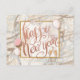 Borracha e balões para desejar a seus amigos e família um Feliz ano novo que é definido em uma tipografia elegante em uma falsa borda de ouro, em um fundo de marfim com espirais, confete de ouro e balões e copos de champanhe. Nas costas, personalize facilmente com sua saudação, nomes e o ano. Você também pode alterar a cor do texto no verso, se desejar, bem como a cor do plano de fundo, por meio da opção Clique para Personalizar mais.