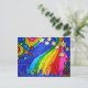 Um arco-íris colorido, atravessa um céu azul profundo. Há estrelas, bolhas e flores voando. O arco-íris termina na palavra "Charlotte". Pintado por Carina Rainbow, markers on wood, Berlim 2011