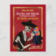 Design para aqueles casais que adoram dançar, e vão dançar esta vida e além. Prepare-se e comemore seus núpcias futuros com este crânios de açúcar divertido e colorido dançando Salve o Cartão-Postal de Data. Decorado com um fundo vermelho texturizado e uma elegante estrutura dourada. Mensagem personalizável e personalizada no verso, deixe o vazio se quiser enviar uma nota manuscrita