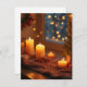 Este cartão postal cria uma imagem calorosa com uma vista noturna de Natal fora da janela e velas lindamente iluminadas. Expresse seus sentimentos com um cartão postal sentimental.