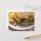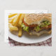 Cartão Postal Cheeseburger, mordidas com batatas fritas