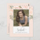 Este design apresenta um cartão-postal de anúncio de graduação, com um modelo de foto de mais velho, uma elegante tipografia de script simples, com champanhe floral de blush de aquarela, e uma moderna classe formando de caligrafia, um pêssego de boné de rico mortarboard, com um partido de formando de tendências, excelente para segundo grau faculdade e convites universitários, um convite minimalista mínimo, uma menina feminina para seu design.