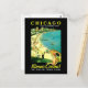 Poster vintage de arte para Chicago Illinois Central com uma mulher de deco de arte olhando para o lago Michigan.